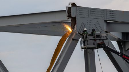 Maryland Governor Wes Moore told a news conference that a section of the bridge’s steel superstructure north of the crash site would be cut into a piece that could be lifted by crane onto a barge and brought to the nearby Tradepoint Atlantic site at Sparrows Point.