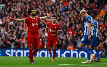 LIVERPOOL, England (Reuters) -Striker Mohamed Salah scored the winner as Liverpool came back from a goal down to beat Brighton & Hove Albion 2-1 and go top of the Premier League ahead of Manchester City’s showdown with Arsenal later on Sunday.