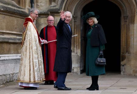 WINDSOR, England (Reuters) -Britain’s King Charles greeted well-wishers in an impromptu walkabout after an Easter church service in Windsor on Sunday, his first appearance at a public royal event since his cancer diagnosis was announced in February.