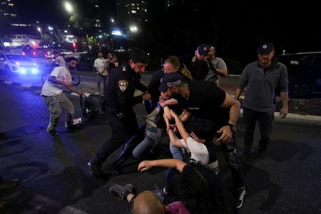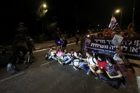 JERUSALEM (Reuters) – Thousands of Israelis took to the streets in Jerusalem on Monday, continuing a three-day protest against the government of Prime Minister Benjamin Netanyahu and demanding new elections.