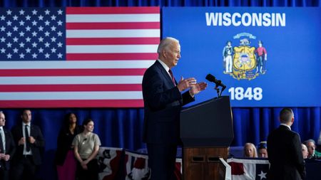 Wisconsin and Michigan are part of an imaginary “blue wall” that Biden will need to hold to secure a second term, a drive complicated by the popularity of third party candidates like Robert F.