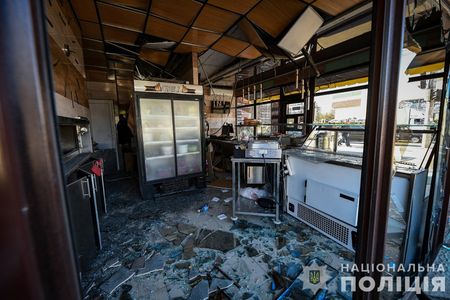 Images from the site, shared by Fedorov and the interior ministry, captured shattered windows of a cafe and a small shop.