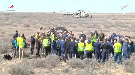 MOSCOW (Reuters) -A Russian descent vehicle landed safely in Kazakhstan on Saturday, returning from the International Space station with astronauts from Russia, Belarus and the United States, live footage broadcast by Russia’s Roscosmos space agency showed.