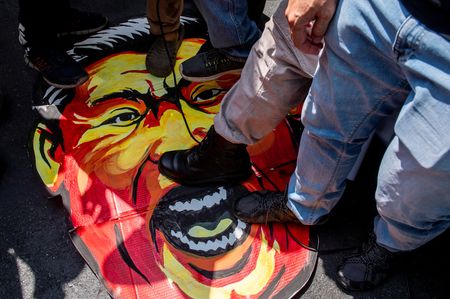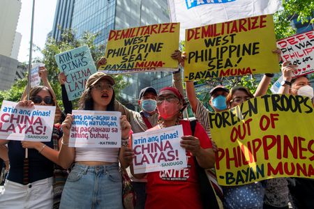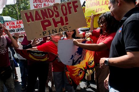 MANILA (Reuters) – Protesters in Manila trampled on an effigy of Chinese President Xi Jinping on Tuesday as they condemned China’s “aggression” against the Philippines in the South China Sea.