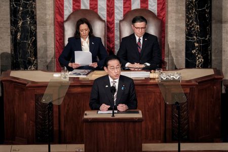 WASHINGTON (Reuters) – Japanese Prime Minister Fumio Kishida drew cheers and applause from U.S. lawmakers on Thursday when he announced a plan to donate 250 cherry trees to the U.S. capital to celebrate the 250th anniversary of the U.S.