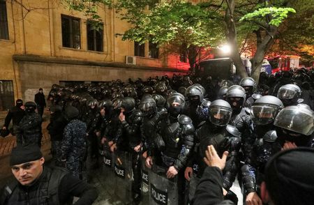 TBILISI (Reuters) -Riot police in Georgia began clearing demonstrators from around the ex-Soviet state’s parliament on Tuesday as lawmakers debated a bill on “foreign agents” that the opposition denounces as authoritarian.