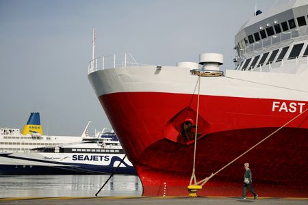 ATHENS (Reuters) -Ships remained docked at Greek ports and train services were halted on Wednesday as transport workers joined a 24-hour strike by private workers to demand higher pay to cope with rising living costs.