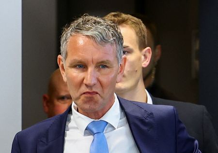 HALLE, Germany (Reuters) -A leading member of the far-right Alternative for Germany (AfD) party appeared in court on Thursday, charged with using a banned Nazi paramilitary slogan, in a trial just months before a state election he hopes to win.