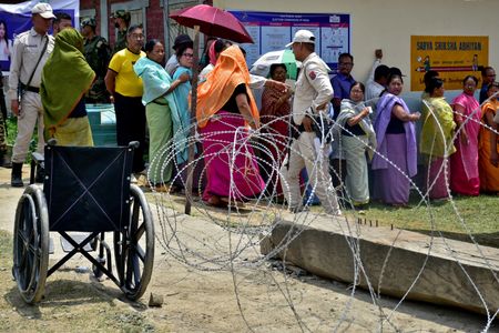 GUWAHATI (Reuters) – A re-run of voting at 11 polling stations in India’s restive northeastern state of Manipur concluded peacefully on Monday with a turnout of almost 82%, election commission officials said, days after polling was marred by violence.