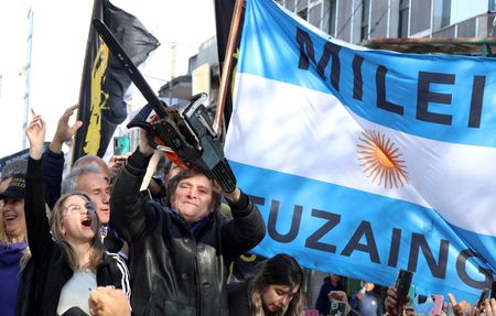 BUENOS AIRES (Reuters) – Argentina’s libertarian President Javier Milei is revving up his attack on the country’s deep fiscal deficit, doubling down on “chainsaw” spending cuts and “blender” austerity that squeezes purchasing power – and he hopes brings down rampant inflation.