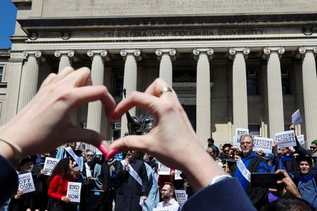 NEW YORK (Reuters) -Police arrested dozens of people at pro-Palestinian demonstrations at Yale University in Connecticut and New York University in Manhattan on Monday, as the war in Gaza continued to reverberate through U.S.