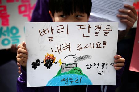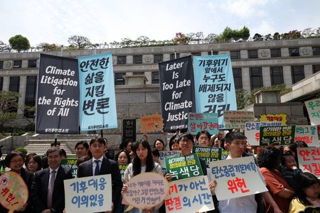 SEOUL (Reuters) -South Korea’s Constitutional Court began hearing on Tuesday a case that accuses the government of having failed to protect 200 people, including dozens of young environmental activists and children, by not tackling climate change.