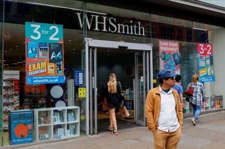 (Reuters) -Shares of WH Smith fell as much as 10.8% on Thursday, after the British airport retailer flagged lower growth at start of the second-half after a strong travel boom last year.