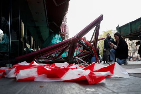 PARIS (Reuters) -The sails of the landmark red windmill atop the Moulin Rouge, the most celebrated cabaret club in Paris, fell to the ground overnight in the early hours of Thursday, much to the sorrow of tourists.