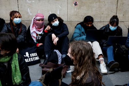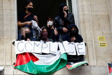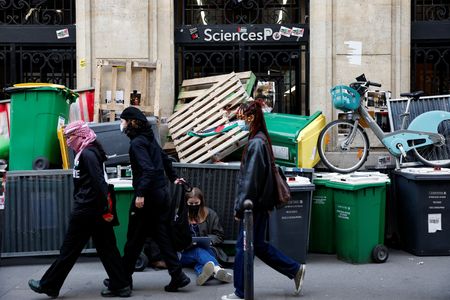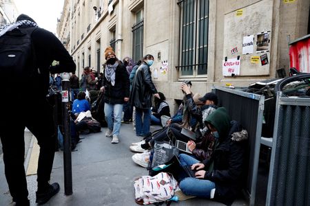 PARIS (Reuters) – Tensions flared in front of Paris’ prestigious Sciences Po university over the war in Gaza on Friday as pro-Israeli protesters came to challenge pro-Palestinian students occupying the building.