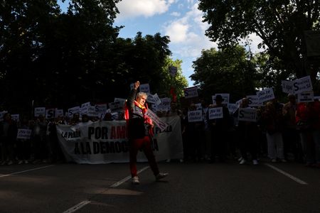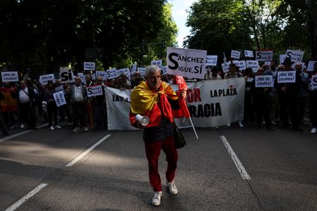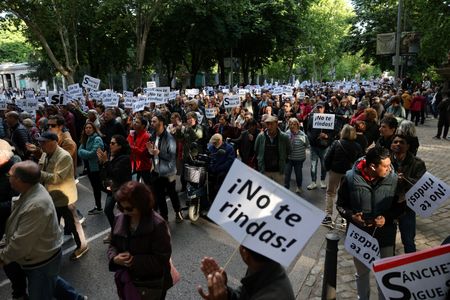 MADRID (Reuters) – On the eve of Spanish Prime Minister Pedro Sanchez’s dramatic announcement about his future, thousands of Socialist Party supporters rallied in Madrid on Sunday to ask him to stay on after he stunned the country this week by saying he might quit.