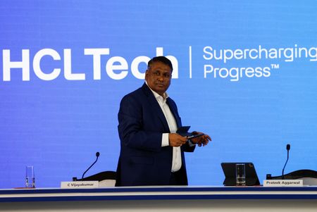 BENGALURU (Reuters) – HCLTech shares plummeted as much as 6.3% on Monday, its biggest fall in nearly 17 months, as India’s No.3 software services company forecast fiscal 2025 revenue growth below estimates.