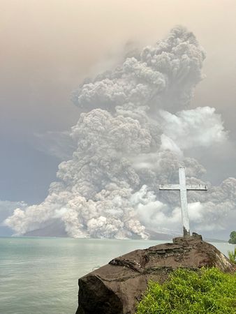 JAKARTA (Reuters) -Indonesia’s Ruang volcano erupted on Tuesday, spewing lava as lightning flashes lit up its crater, prompting authorities to raise the alert status and evacuate more than 12,000 people living on a nearby island.