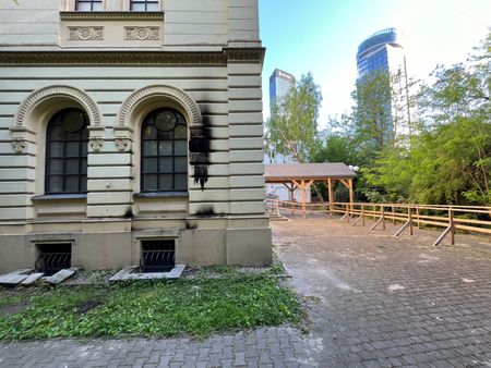 The Warsaw incident left soot marks around a ground-floor window of the synagogue as well as a burned area on the grass below.