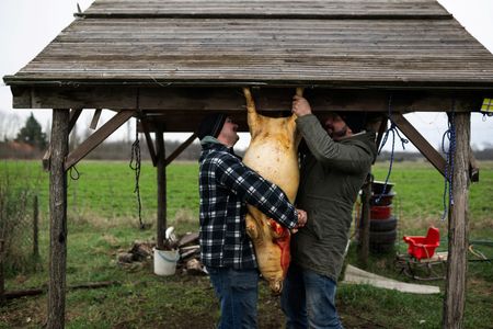A small pot-bellied pig traded with a friend is eaten from nose to tail. A rooster is swapped with another friend who is a beekeeper.