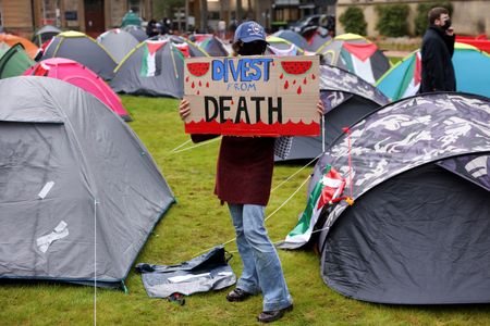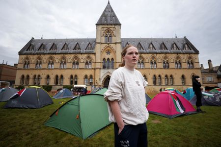 OXFORD (Reuters) – British students set up pro-Palestinian protest encampments on Oxford and Cambridge universities’ historic campuses on a cloudy spring Monday, in a show of solidarity with their American peers.