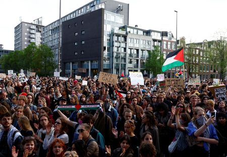 AMSTERDAM (Reuters) -Police clashed with pro-Palestinian protesters as thousands marched in the Dutch capital on Tuesday, a day after riot police violently broke up an encampment at Amsterdam University.