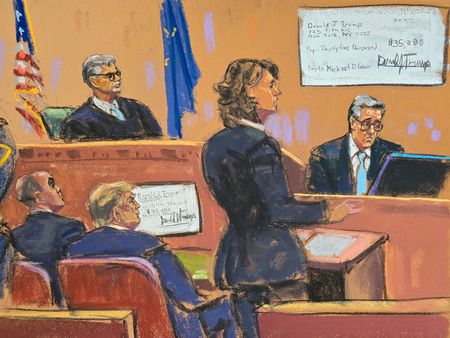 NEW YORK (Reuters) -Donald Trump’s former fixer Michael Cohen faced aggressive questioning on Tuesday from the Republican presidential candidate’s defense lawyers, who sought to undermine Cohen’s testimony that Trump was intricately involved in a scheme to buy a porn star’s silence.