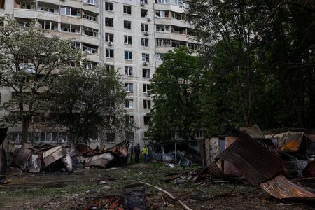 KYIV (Reuters) – Ukrainian President Volodymyr Zelenskiy visited the northeastern city of Kharkiv on Thursday to boost morale and reinforce troops in the region where Russian forces are trying to press their new offensive beyond border areas.