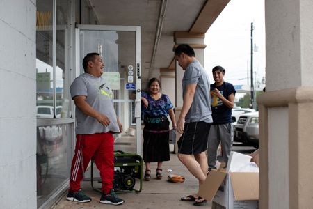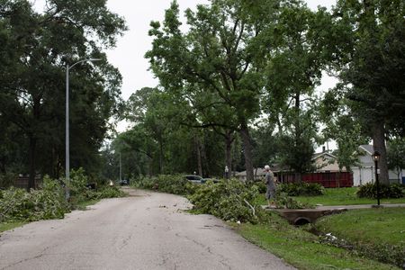 (Reuters) – A severe storm packing hurricane-force winds pummeled Houston on Thursday, killing at least four people, blowing windows out of high-rise buildings and leaving some 800,000 homes without power as much of the city was plunged into darkness, the mayor said.