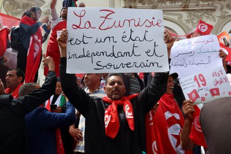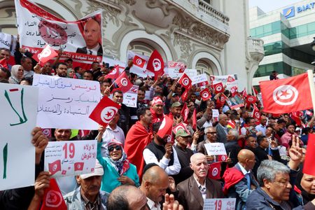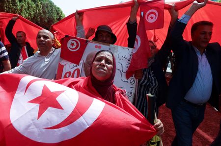 TUNIS (Reuters) – Hundreds of people demonstrated in Tunis on Sunday in support of President Kais Saied amid widespread criticism at home and abroad after a wave of arrests that included journalists, activists and lawyers.