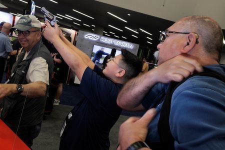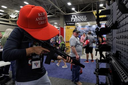 DALLAS (Reuters) -Republican presidential candidate Donald Trump pledged to unravel gun regulations put in place by Democratic President Joe Biden during a lengthy speech to the National Rifle Association on Saturday, during which he accepted the influential group’s endorsement.