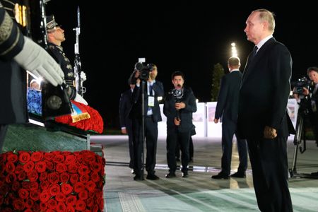 Photos and video footage posted on the Kremlin website and by Russian news agencies showed Putin visiting the New Uzbekistan park in Tashkent and laying a wreath at a monument to Uzbek independence.