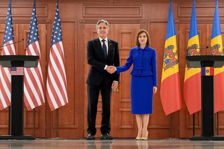 During the press conference with Moldovan President Maia Sandu, Blinken praised what he said was the country’s extraordinary resilience despite “bullying” from Russia, efforts to spread disinformation and weaponizing corruption