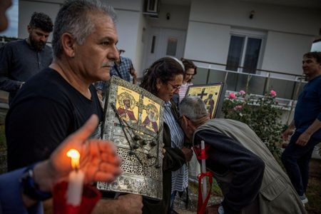 MAVROLEFKI, Greece (Reuters) – At a small shrine in northern Greece, locals clutching icons of Greek Orthodox saints dance to lyres and drums in preparation for a ceremony in which they will walk on fire barefoot.