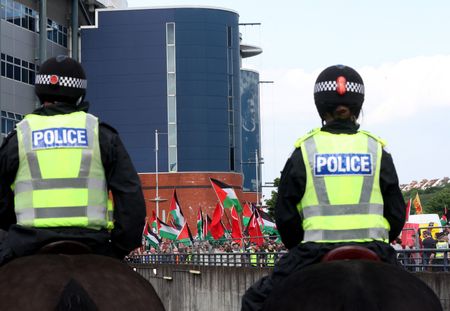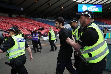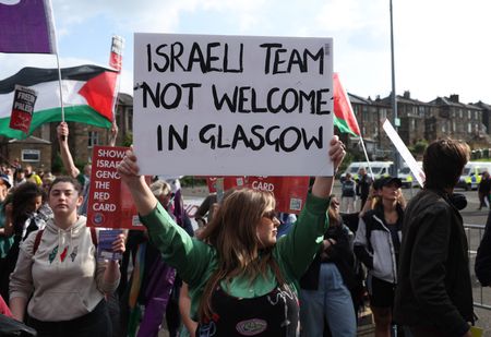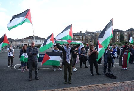 GLASGOW, Scotland (Reuters) – Protesters assembled outside Hampden Park in Glasgow on Friday ahead of Scotland’s Women’s Euro 2025 qualifier versus Israel, demonstrating against Israel’s military operation in Gaza.