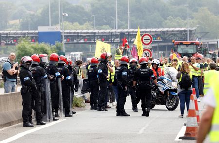 LA JUNQUERA/IRUN, Spain (Reuters) – Spanish and French farmers blocked roads along the border through the Pyrenees mountains on Monday ahead of European Parliament elections to protest against what they say is unfair competition from outside the European Union.