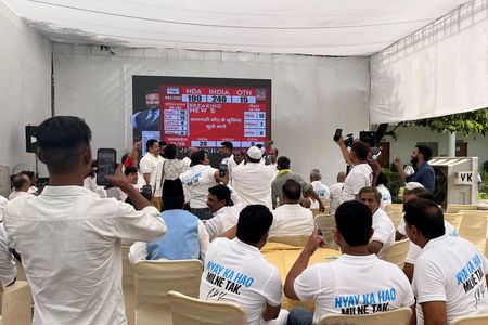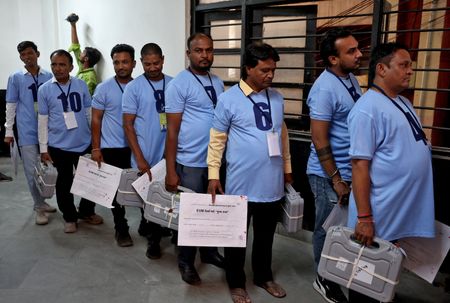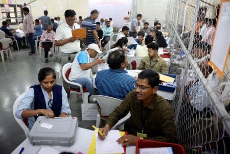 BENGALURU (Reuters) -Indian Prime Minister Narendra Modi’s alliance was heading towards a majority in vote counting trends in the general election on Tuesday, but the numbers so far showed the margin of victory may not be as large as exit polls suggested, leading to a rout across markets.