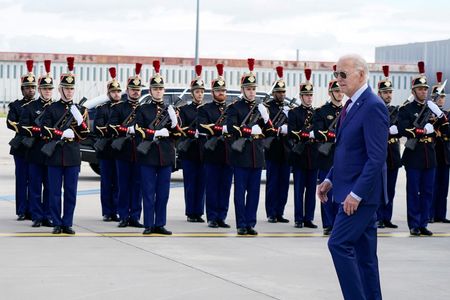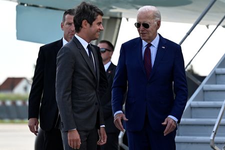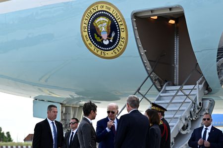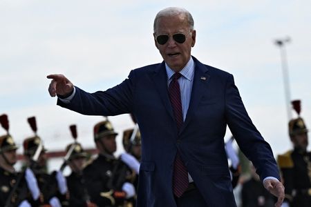 PARIS (Reuters) -President Joe Biden landed in France on Wednesday to commemorate the 80th anniversary of D-Day on a trip designed to underscore his commitment to U.S. allies in Europe and contrast his vision of democracy with his 2024 political opponent Donald Trump.
