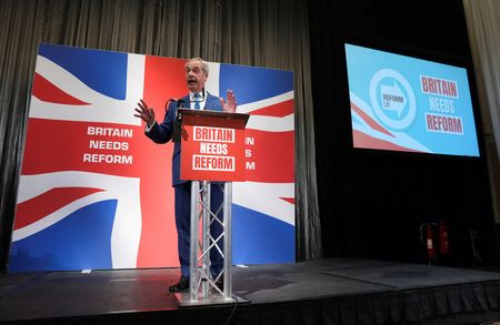 LONDON (Reuters) – A 25-year-old woman has been charged with the offences of assault by beating and criminal damage after throwing a milkshake over Nigel Farage, the leader of Britain’s Reform Party, during an election campaign event.