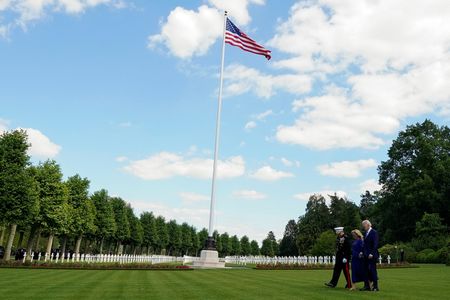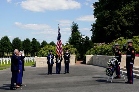 BELLEAU, France (Reuters) – U.S. President Joe Biden and his wife, Jill Biden, stopped at an American cemetery in France on Sunday that former president Donald Trump declined to visit in 2018, drawing widespread criticism at the time.