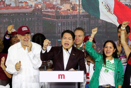 MEXICO CITY (Reuters) -Mexico’s ruling Morena party and its allies have won a super-majority in the lower house of Congress but not the Senate, the party’s president said on Sunday, falling just short of the two-thirds majority needed in both houses to change the constitution.