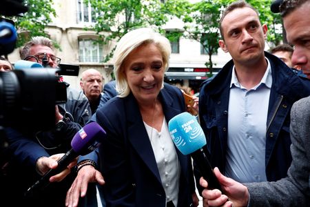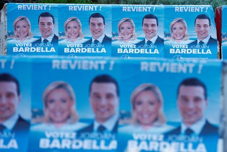 PARIS (Reuters) – The far-right National Rally was forecast on Monday to win a snap election in France but fall short of an absolute majority in the first opinion poll published after President Emmanuel Macron’s shock decision to dissolve parliament.