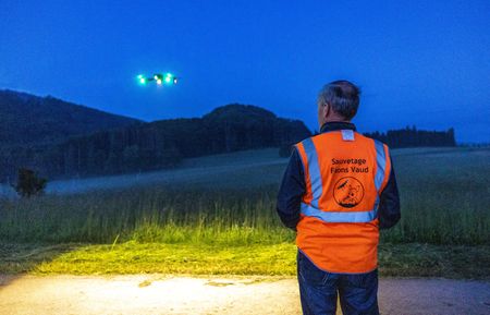 FOREL, Switzerland (Reuters) – In the lush fields of the Swiss town of Forel, volunteers use drones before dawn to find fawns, or young deer, nestled beneath tall grasses, preventing farmers from inadvertently harming them with heavy agricultural machinery.