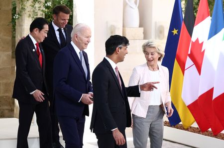 BORGO EGNAZIA, Italy (Reuters) -Leaders of the Group of Seven major democracies agreed on an outline deal on Thursday to provide $50 billion of loans for Ukraine using interest from Russian sovereign assets frozen after Moscow invaded its neighbour in 2022.