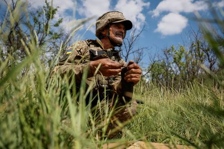 DONETSK REGION, Ukraine (Reuters) – Huddling in the dark with his automatic rifle, 50-year-old Ukrainian soldier “Bell” said he wished more of his younger compatriots would join the fight against Russia’s invasion.