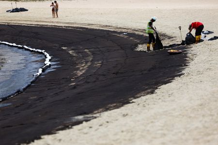 A Reuters witness saw tape cordoning off the oil-stained waters and sand of Tanjong Beach from visitors.