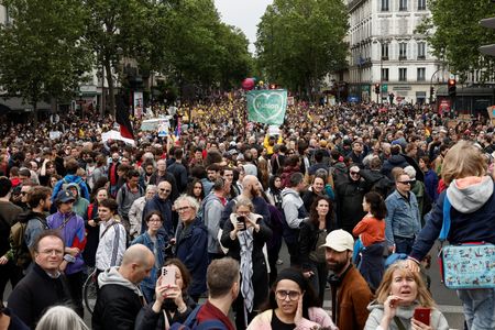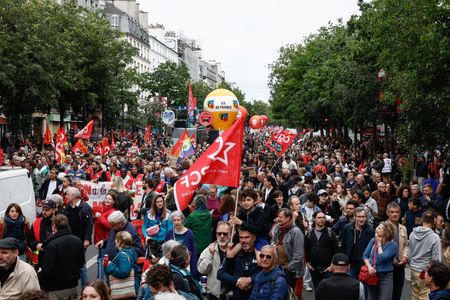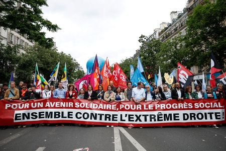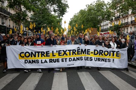 PARIS (Reuters) -Thousands marched in Paris and cities across France on Saturday to protest against the far-right National Rally (RN) ahead of upcoming elections to the French parliament.