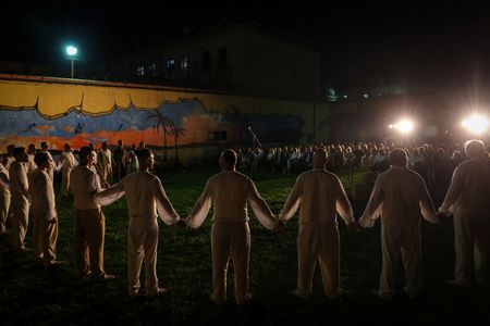 KORYDALLOS PRISON, Greece (Reuters) – On a stifling summer evening, the actors took to the stage: a grassy courtyard enclosed by towering prison walls, topped with barbed wire and lit by a floodlight.