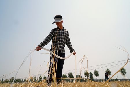 JINAN, China (Reuters) – After weeks of scorching heat and little rain, farmer Zhang Yunjing had no choice but to collect water from a wastewater pipe to irrigate her parched corn field in China’s eastern Shandong province.