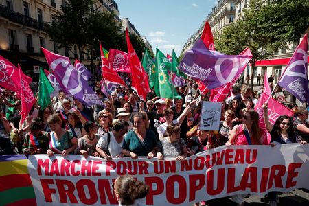 PARIS (Reuters) – Thousands of women took to the streets in cities around France on Sunday to protest against Marine Le Pen’s far-right National Rally, as polls indicated the party could win the upcoming parliamentary elections.